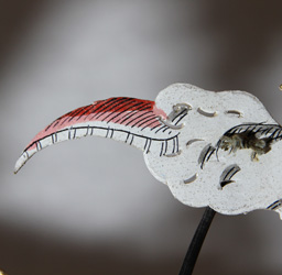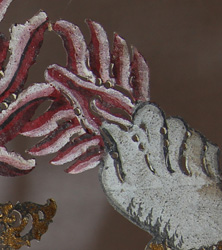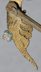 einem hinter der Figur hochgebogenen Affenschwanz und
