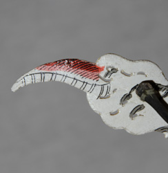 geöffneter, mit Zähnen bewehrter Mund, Augen groß und