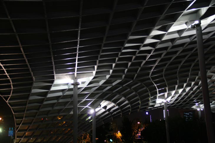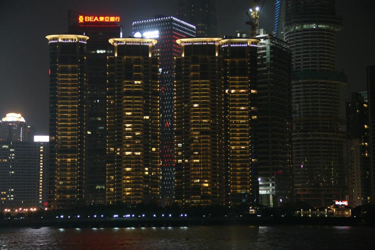 Abb. links: Ausflugsschiff in Form einer Galeone auf dem Huangpu Jiang. Abb. rechts: Shanghai Port International Cruise Terminal