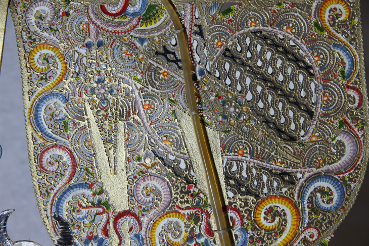 Seine vier Arme (entspricht der indischen Götterfigur des Shiva)