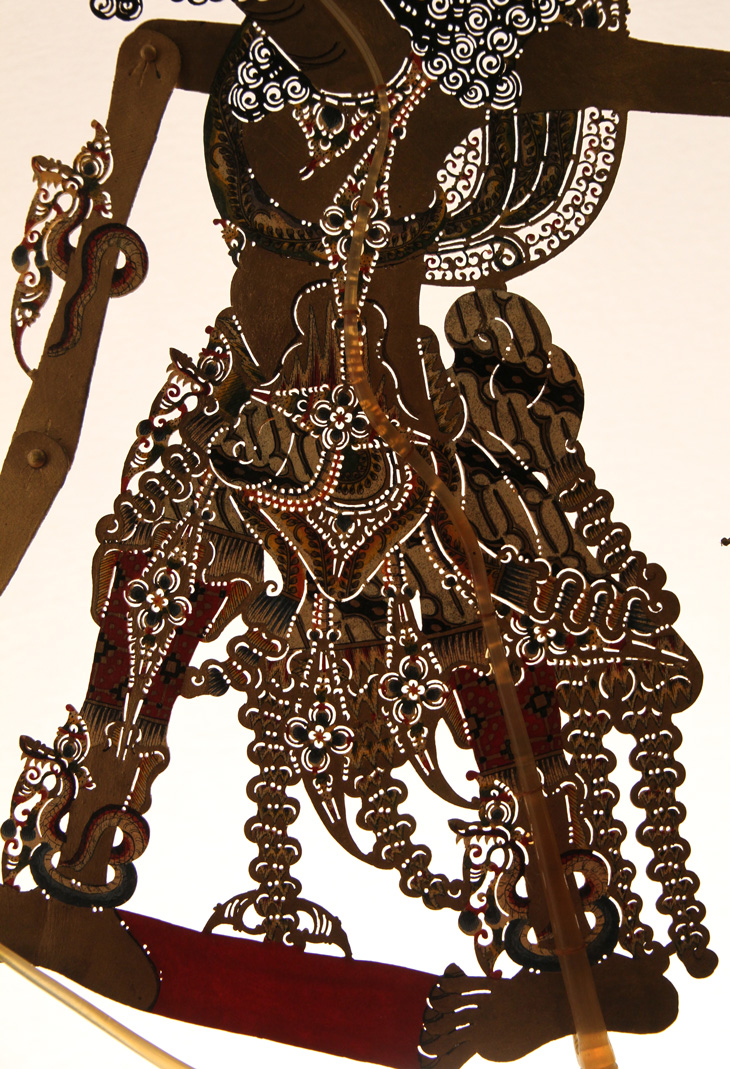 Die abgebildete Figur hat nach dem Franke-Benn-Schematismus den Typ 3-3-1.43.503.60.70. Rote Gesichtsfarbe, Blick leicht gesenkt. Nach dem Franke-Benn-Schematismus kommen dafür drei Charaktere in Frage, 1.) Prabu Rahwana Raja, mit gesenktem Blick, 2.) Prabu Gardapati, mit geradem Blick, und 3.) Raden Dewatumut, mit leicht gesenktem Blick. Die meisten Darstellungen von Rahwana zeigen ihn mit Mahkota, aber es gibt auch solche ohne, die dieser Figur entsprechen. Die meisten Darstellungen von Gardapati zeigen ihn ohne Mahkota, es gibt Varianten ohne offenes Haar und mit erhobenem Blick. Beide Figuren haben die sichtbaren Fangzähne. Über die dritte Option, Dewatumut, ist nichts herauszubekommen. Die hier gezeigte Figur hat einen deutlich gesenkten Blick. Der nächste Vorschlag lautete Duryodana. Eine weitere Identifizierung erfolgte durch Dalang Langen Bradanaya als "Brajadenta". Franke-Benn gibt für Brajadenta an: 30-3-423.502.6.70, was in mehreren Kriterien von der vorliegenden Figur abweicht. Vorschlag DS: Duryodana, Suyudana. Wegen der vielen Vorschläge, von denen sich keiner anhand des Vergleichsmaterials durchsetzen kann, bliebt die Figur weiterhin offen.