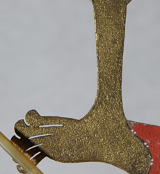 einem hinter der Figur hochgebogenen Affenschwanz und