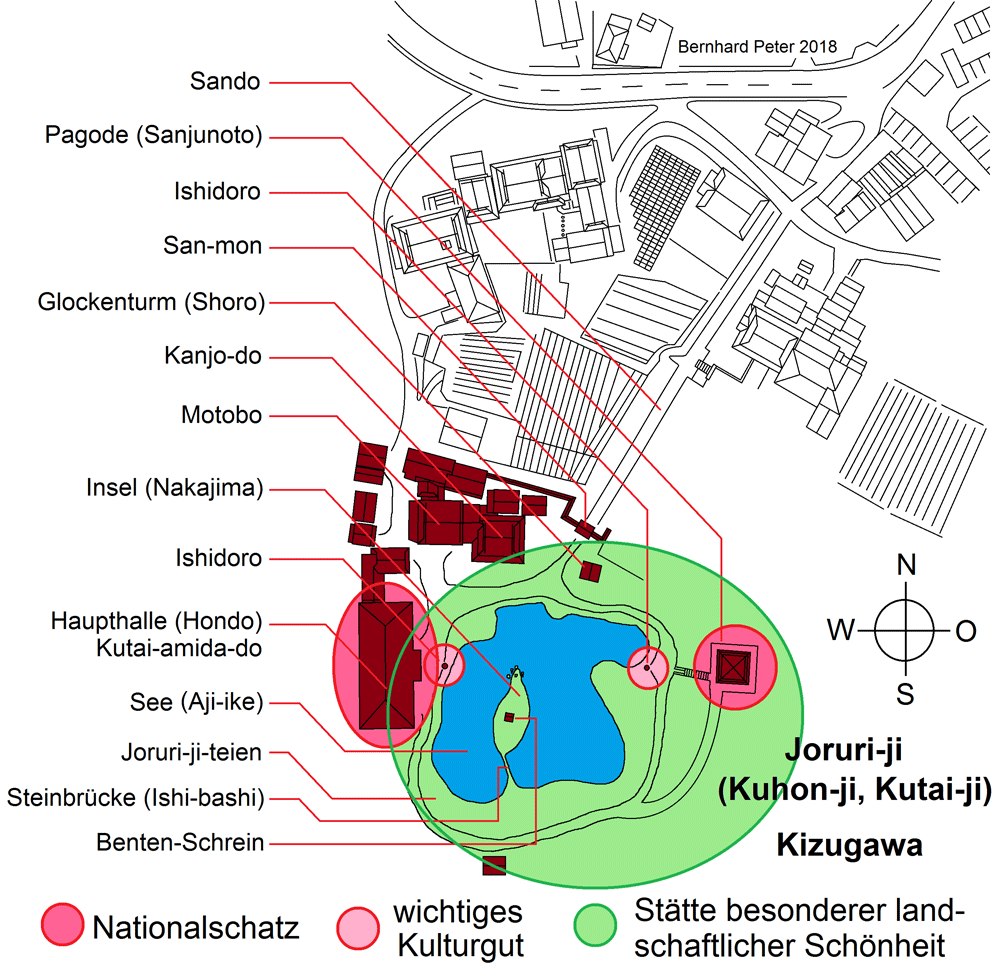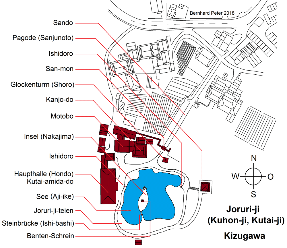 Bernhard Peter Pläne und Grundrisse: Joruri-ji, Kizugawa (Präf. Kyoto)