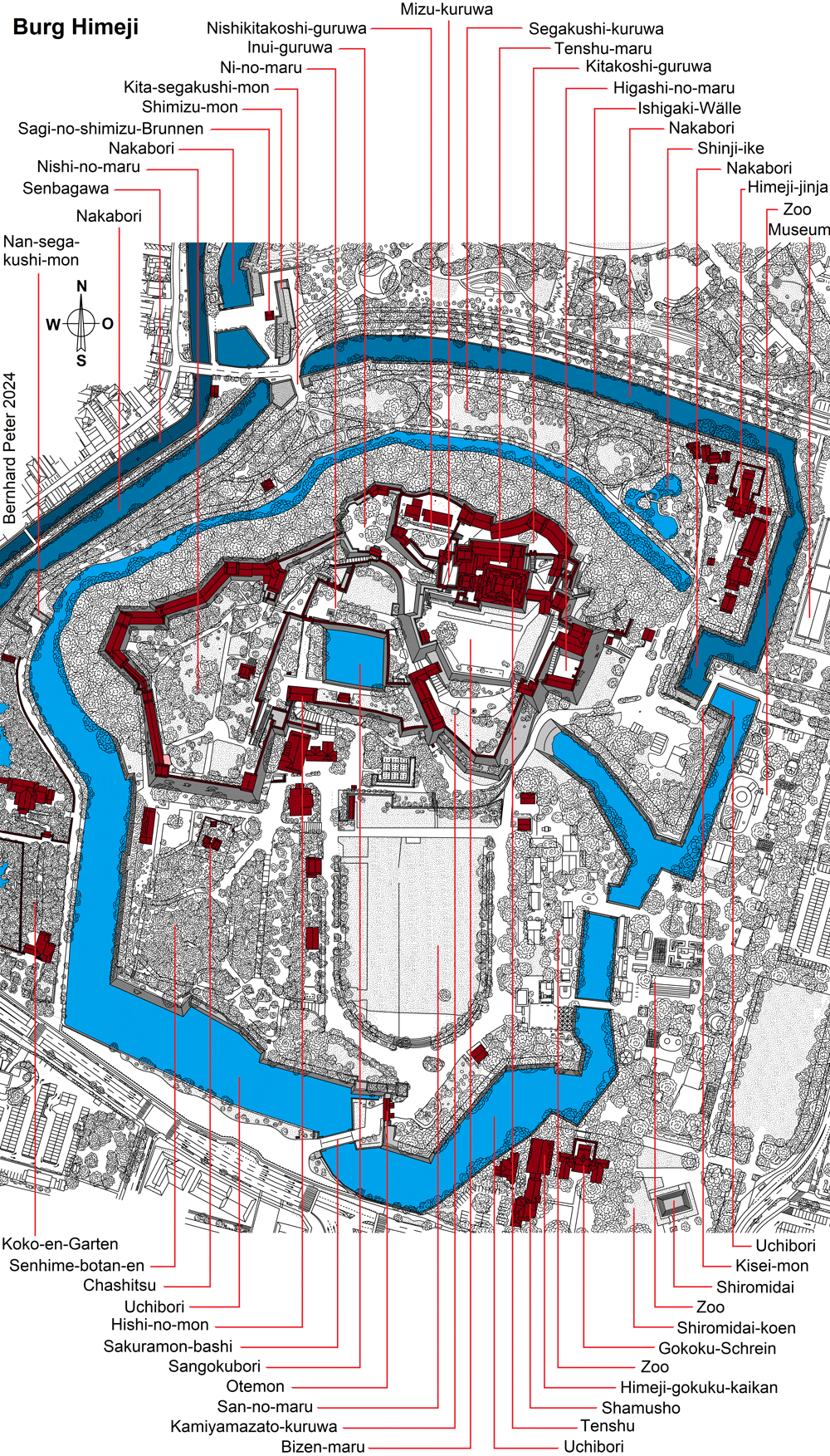 und Grundrisse: Himeji, Burg Himeji (Himeji-jo), Gesamtplan
