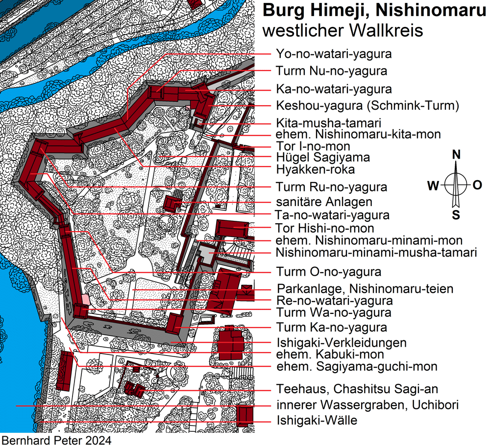 und Grundrisse: Himeji, Burg Himeji (Himeji-jo), Nishinomaru