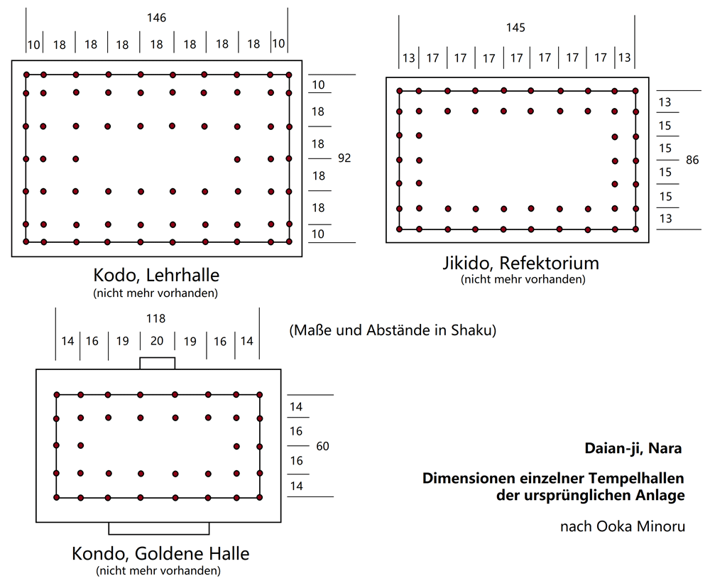 und Grundrisse: Nara, Daian-ji, Hallen der ursprünglichen Anlage