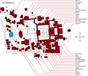 oder zu den Schreinen. Die Zeichnungen basieren auf Luftbildern, z. B.