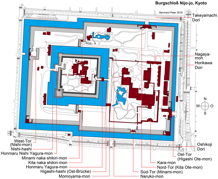 Seiten der Stadt Kyoto: http://www2.city.kyoto.lg.jp/bunshi/nijojo/ - https://www2.city.kyoto.lg.jp/bunshi/nijojo/english/teien/honmaru_t.html - https://www2.city.kyoto.lg.jp/bunshi/nijojo/english/map/index.html - https://www2.city.kyoto.lg.jp/bunshi/nijojo/english/index.html