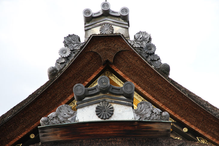 Heute sind fast alle Gebäude mit Ausnahme des Kuruma-yose mit Ziegeln gedeckt. Ursprünglich gab es jedoch eine andere Dachbedeckung, nämlich mit Kokerabuki, das sind dünne Zypressenholzschindeln, typischerweise 0,3 bis 0,5 cm dick, 9 bis 15cm tief und 30 cm breit. Statt Zypresse kann aus Zedernholz oder Kakipflaumenbaumholz genommen werden. Befestigt werden die überlappend angebrachten Schindeln mit Bambusnägeln.