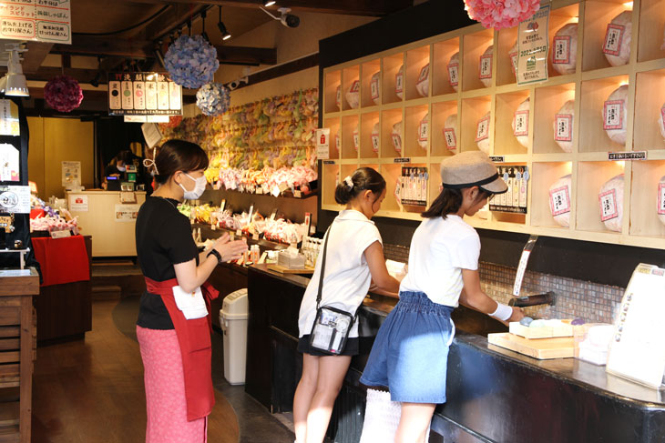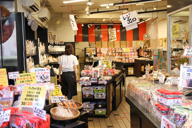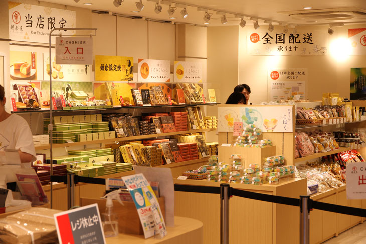 Hier bekommt man die typischen überteuerten und unglaublich schön verpackten Pflicht-Mitbringsel für die Daheimgebliebenen. Auf dem Schild oben rechts wird landesweite Lieferung in ganz Japan zugesagt.