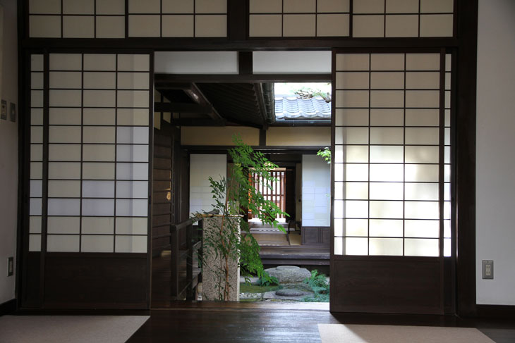 Hauses erfolgte mit Shoji- und Fusuma-Schiebetüren. Innenhöfe
