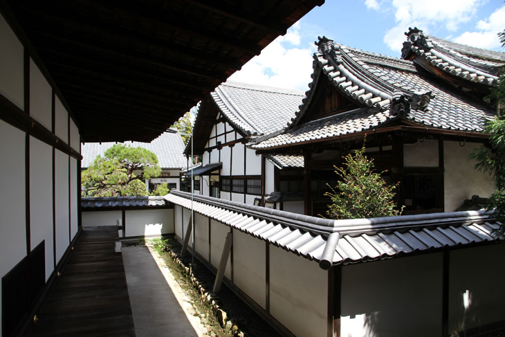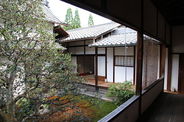 Chokushi-Mon und Chrysanthemen-Motiv belegen die Nähe des Subtempels zum Kaiserhaus. Das Schönste an diesem Subtempel sind die vielen Tatami-Räume im Shoin, die traditionell eingerichtet sind. Eine Besonderheit ist der rückwärtig zum Garten gelegene Raum Renge-no-ma (Lotus-Raum) mit vier quadratischen Fenstern in den Shoji-Wänden (Yukimi-shoji), durch die man bei einer bestimmten Sitzposition vier verschiedene Gestaltungselemente des Gartens sehen kann, von links nach rechts Kamelie (Tsubaki), Steinlaterne (Ishidoro), Ahorn (Momiji) und Kiefer (Matsu). Der "Raum der Erleuchtung" (Satori-no-ma) liegt noch weiter im Osten und besitzt ein rundes Fenster (Maru-mado, Kreisfenster), durch das man auf einen alten Rhododendronstamm schaut. Das Fenster wird "Fenster der Erleuchtung" (Satori-no-mado) genannt, weil die Form im Zen die Perfektion und die Erleuchtung symbolisiert. Der gleiche Raum besitzt auch noch ein quadratisches Fenster (Kaku-mado oder Mayoi-no-mado), durch das man auf einen Apfelbeerenstrauch (Aronia) blickt. In der Symbolik des Zen steht das Quadratische für die Täuschung, die Verwirrung, das irdische Leiden. Im Zusammenspiel bilden beide Fenster eine perfekte Zen-Symbolik. So etwas Ähnliches ist auch im Funda-in zu sehen, einem Subtempel des Tofuku-ji, ferner im Genko-an im Takagamine-Areal im nördlichen Kyoto. Der Raum des Mondfensters (Gesso-no-ma) besitzt ein Fenster in Form eines Halbmondes in der Tokonoma-Wand. Ein weiterer Raum trägt den Namen Tairin-no-ma (= Dairin-no-ma). Zu den wichtigen Kulturgütern des Subtempels wird eine Kamakura-zeitliche Kopie der Lotus-Sutra gerechnet.
