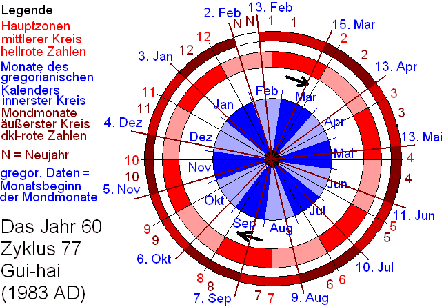 für ein normales Jahr: 1983 AD, Jahr 60 des Zyklus 77, Jahr