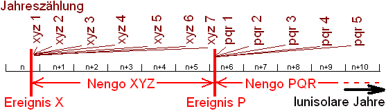 Da ein neuer Kaiser ja nicht pünktlich zum Jahresanfang den Thron besteigt, wird im Jahr des Thronwechsels die erste Zeit nach dem Nengo des Vorgängers benannt, und die zweite Zeit nach dem Wechsel nach dem Nengo des Nachfolgers.