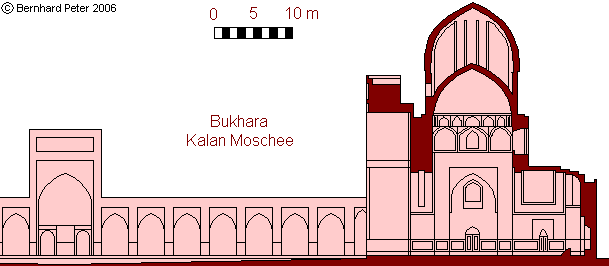 Ein weiteres Beispiel ist die Doppelkuppel der großen Moschee Kalyan in Bukhara Auch hier macht erst die doppelschalige Konstruktion die starke Wölbung der Kuppel nach außen möglich, ohne die Stabilität zu gefährden und ohne den Innenraum disharmonisch wirken zu lassen: